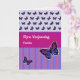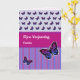 A modern birthday card design in Dutch ready for you to personalize with your own text and the name of the recipient. The color scheme is pink, lilac and blue, and there are coordinating butterflies and stripes patterns on the front. Inside, there is a single butterfly on one side, and a delicate pattern of scattered hearts on a pale pink background on the other. Type in the boxes to change the greeting on the front "Fijne Verjaardag" (= "Happy Birthday") and the name. And change the message inside, or use "Van harte gefeliciteerd met je verjaardag! " (= "Congratulations on your birthday!").