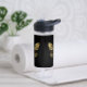 Butterfly black gold name script water bottle