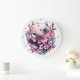 Let your space blossom with gentle movement and vibrant color. This enchanting wall clock features fluttering butterflies and blooming florals in shades of pink, purple, and blue, all set against a soft sunset-like glow. A delicate dance of petals and wings brings a sense of calm, joy, and renewal—perfect for bedrooms, creative studios, or anywhere that calls for a touch of nature’s magic.