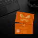 A trendy burnt orange colored background decorated with a faux gold butterfly. Personalize and add your name on the front. Back: Templates for Your name, title, phone number, mail and website address, QR-code.