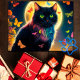 Butterfly cat glowing insect starry night animal postcard