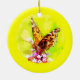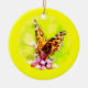 Decorate your Christmas tree with this delightful holiday ornament! A gold, orange, brown and white American Lady Butterfly is perched on a lovely magenta verbena blossom.