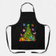 Great color and even though I ordered the kid size, it covers well enough to use during the holidays. I am not a big woman and prefer a shorter apron. I stand 5"6" and the length of the garment goes to mid-thigh. The tie straps fit well at my waist and even though there is no neck strap adjustment, the opening is plenty big enough. I am happy with the size and fit. I am sharing my apron with my 10 year old grandson, too! The color is vibrant and looks good, as shown on the website. The stitching looks strong and reinforced. Photographed is front side and back side of the apron, reinforced straps and coloring. My phone camera may not be the best at showing the details.