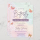 A little butterfly is on the way baby shower invitation.