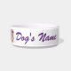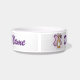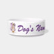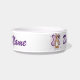 This beautiful corgi art has the dog breed with a pair of purple butterfly wings. The cartoon canine floats in mid-air with a pretty background of butterflies and stars. Whimsical Pembroke Welsh Corgi dog bowl is customized with your pet's name.