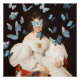 Vintage painting remix of a woman wearing a vintage white dress with pastel blue butterflies.