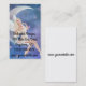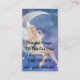 Fantasy themed business cards with a blonde fairy with white butterfly wings sitting on a moon.