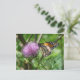 Butterfly feasting on purple thistle postcard