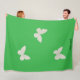 The image shows a woven blanket featuring a large white butterflies at its center on a dark textured background with subtle shades of purple and blue. The blanket has fringed edges and includes the customizable placeholder text “you text” in pink along the side.