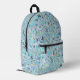 Doodle style hand drawn butterflies, birds, flowers, and leaves in many colors on an aqua blue background with black accents.