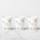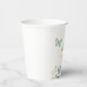 Elegant butterfly theme birthday party paper cup featuring illustration of pink and mint green butterflies with a botanical garden.