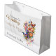 This elegant tote bag features vibrant gradient butterflies in shades of pink, purple, and blue, beautifully arranged with detailed floral elements and luxurious gold accents. The composition is rich, full, and visually striking — designed to stand out while maintaining a sophisticated and feminine aesthetic.
