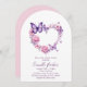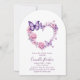 Looking for a unique and elegant baby shower invitation? This one features a watercolor heart-shaped floral butterfly wreath that perfectly captures the joy of a new arrival. Adorned with delicate pink roses and graceful purple butterflies, the design exudes charm and sophistication. At the center of the wreath, in elegant script and typography, the heartfelt message reads: "A baby butterfly is on her way." This invitation is fully personalizable, allowing you to add all your event details and make it uniquely yours. Ideal for celebrating the upcoming birth of a baby girl! Personalize yours now to make it your very own!