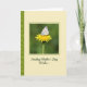 Designed with a close-up nature scene, the card centers on a white butterfly with orange-and-black speckles resting on a rich yellow flower, like a gentle pause between close companions ❤️. The butterfly sits calmly with slim antennae angled upward, while the flower’s layered golden petals spread outward from a textured center. Behind them, a softly blurred green backdrop keeps the focus on the pair and adds a quiet, intimate mood. A thin double border in muted green frames the photo and separates it from the pale cream background around it. Along the left edge, a deeper green vertical band carries repeating leaf shapes, adding a tidy botanical accent 🌼. Beneath the image, a short message appears in dark green lettering, centered and spaced comfortably below the frame. The yellow bloom rises from a sturdy green stem, with the butterfly perched squarely at the flower’s center.