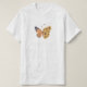 The background of the T-shirt is a clean, neutral color, such as white or light gray, to make the floral details pop. Optional accents could include faint outlines of feathers or petals surrounding the wing to give it a soft, ethereal aura. The overall effect is a blend of nature and fantasy, perfect for someone who loves artful, unique designs.