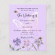 A violet background. Decorated with bees and painted wildflowers in violet and pink and a large butterfly. Personalize and add your names and the details.