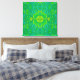 anvas print featuring whimsical arabesque pattern full of summer vibes. Stylized flowers, butterflies, tree branches and solar spheres. Vintage / ethnic / bohemian / boho / hippie / 70s / newage style. Yellow and green colours, hand drawn pastel texture.
