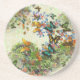Enchanting drink coaster featuring a floral digital collage of a garden teaming with butterflies, flowers and foliage.