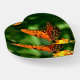 This glass paper weight is shown in a heart shape with a photo print of a beautiful butterfly on a flower.