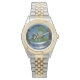 The watch is very nice, the picture is great and the watch looks like quality. The only problem I am having with it is that it is a little too large, and I also can't figure out how to open the clasp. No directions came with it. Very good. The printing is perfect and the watch keeps good time.
