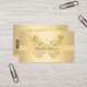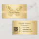 An elegant faux gold background decorated with a butterfly. Personalize and add your name on the front. Back: Templates for Your name, title, phone number, mail and website address, QR-code.