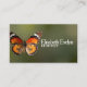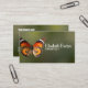 This high-resolution photograph presents a vivid butterfly with intricate wing patterns in warm orange, black, and white tones, positioned on the left (30-38% of the 16:9 frame) with generous negative space on the right. The soft blurred green background enhances the subject’s elegance, making it a perfect nature-inspired design element for business cards. The image balances artistic composition with professional aesthetics, suitable for branding and contact presentation materials.