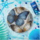 Butterflies, blue and gold watercolor composition