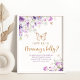 Purple, gold calligraphy butterfly How big is mommy's belly sign.