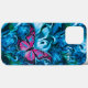 Personalize this Unique "One of a Kind" Butterfly iPhone Case! It Features a Pink, Blue and Black Butterfly Flying Among Beautiful Light and Dark Blue Flowers!