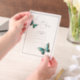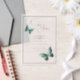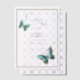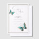 Two beautiful blue and faux silver butterflies appear to sparkle and shine against a see-through, vellum overlay that is ramed by a rectangular border. Editable templates for the special event you are celebrating and key details appear down the middle. This design is ideal for "butterfly theme"; outdoor garden or country celebrations.