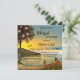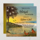 Romantic Rehearsal Dinner invitation featuring a painting of a coastal landscape scene with butterflies and a blossoming tree at sunset. On the back is an (optional) and easy to customize QR code template.