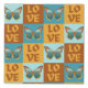 Decorate your walls with this Butterfly Love Pattern | Blue & Orange Gradient Canvas Print. A beautiful geometric pattern of butterfly squares alternating with the word: Love. A great gift idea for butterfly lovers.