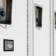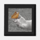 A child holds out his hand and welcomes a butterfly to perch there. Colorized photography on black and white.