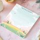 Escape to a serene meadow with this charming, personalized notepad. The design features a whimsical field of pastel wildflowers and fluttering butterflies, creating a sense of peace and tranquility. The soft, muted colors and delicate details add to the design's appeal. Customize this notepad with your own text. Perfect for journaling, notes, or sharing a thoughtful message.