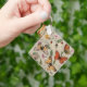 The key chain is made of metal and really sturdy. The flower design is really cheerful. The logo and colors are clear and crisp!