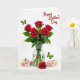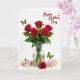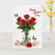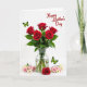 Designed with a bright white background, this card features a clear glass vase holding six deep red roses, their green stems visible through the water. The rose petals look velvety and slightly curled, like they’re leaning toward each other in a quiet, romantic cluster ❤️. Around the base of the vase, smaller roses in blush pink and soft cream are scattered in a loose ring, adding a gentle, friendly softness to the scene. Two lime-green butterflies with black outlines add light movement, as if they’re drifting between the blooms and the open space. One butterfly sits toward the upper left area, while the other balances the design near the lower right. In the upper right corner, a short message appears in flowing red lettering that matches the main roses. The red roses stand tall in the center, with pale blossoms nestled low and the butterflies angled diagonally across the white space 🌼.