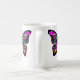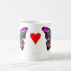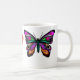 Colorful mug with butterfly on both sides and heart. Butterflies symbolize freedom, change, nature.