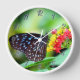 Beautiful photo of a butterfly sitting on pink and yellow flowers, is featured on this round wall clock. Clock has white wooden frame look, uses one AA battery, not included. Use yourself or give as a gift for housewarmings, weddings and more!