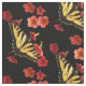 This exquisite fine art floral fabric design features a yellow and black Tiger Swallowtail butterfly on red and pink Calibrachoa flowers. What a lovely idea for gardeners! Easily customize the black background to the color of your choice to suit you special project.