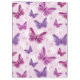 Seamless pattern of flying butterflies in shades of pinks and purples with white flowers over pale pink background. © and ® Bigstock® - All Rights Reserved.