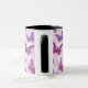 Seamless pattern of flying butterflies in shades of pinks and purples with white flowers over pale pink background. © and ® Bigstock® - All Rights Reserved.