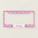 Pink and purple hued butterflies flutter around in the pattern on this cute license plate frame along with easy to personalize text.