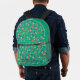 This backpack is sure to draw attention, immediately grabbing the eye with its striking visual appeal. The design features a gorgeous and elaborate butterfly pattern, a delicate and captivating motif that is certain to please. The color palette is carefully chosen and executed, showcasing a harmonious combination of turquoise, purple, and green hues. These colors blend seamlessly together, enhancing the butterfly design and creating a visually stunning effect. The turquoise provides a refreshing and vibrant base, while the purple adds a touch of regal elegance, and the green completes the scheme with a natural and earthy feel, all contributing to the backpack's overall beauty.