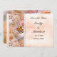 Save the Date for the wedding flat card. Beautiful design with an orange butterfly touching white heart-shaped pearl beads. Another butterfly blends into the bouquet of light orange and pink roses. Orange is the theme color on the parchment paper image. Convert this for any occasion. Add a photo and/or change the text