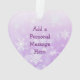 On the first side of this pretty purple and white ornament is a butterfly and white snowflakes. On the back you can add a personal message to whoever you are buying it for.