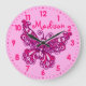 Girls butterfly named wall clock a perfect gift. Cute clock looks great in a kid's bedroom. Customize with your own name. Currently reads Madison. Uniquely designed by Sarah Trett.
