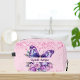 A girly pink background decorated with a purple butterfly, pink and purple flowers, confetti. Personalize and add your name.