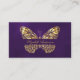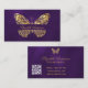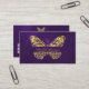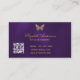 Butterfly purple gold QR code elegant script Business Card