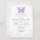 Una invitación para la Quinceañera simple y elegante. Presentando una mariposa lila con corona de plata rodeada con un borde de jardín que permitirá que sus invitados fácilmente encuentren toda la información necesaria para su gran evento. Los números Romanos "XV" representan las 15 primaveras de su cumpleañera. El lado trasero es el lugar perfecto para subir una foto de la bella Quinceañera.