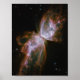 An ephemeral looking planetary nebula looks much like a butterfly soaring through space in delicate shades of white, pink, orange, and deep teal.